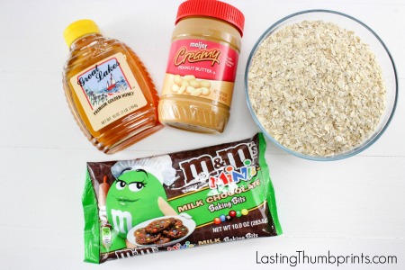 Refrigerate for about an hour. And then enjoy! We have substituted the M&Ms with raisins to create a healthier option as well. And if you have someone with a milk allergy, you could substitute the M&Ms for dairy free mini-chocolate chips.