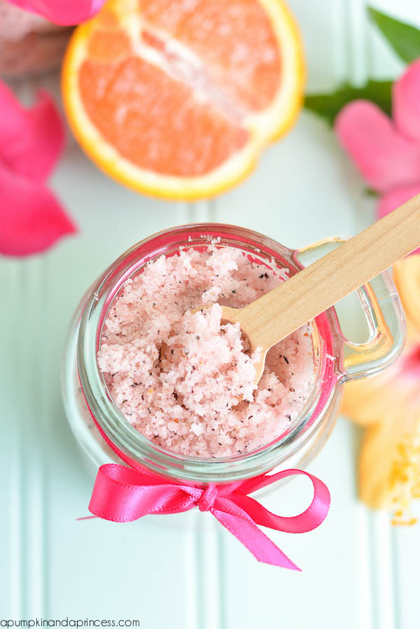 A pleasant fruity smell compliments this pomegranate sugar scrub. It’s light pink color is great for a sweet, low-cost Valentine’s Day gift!