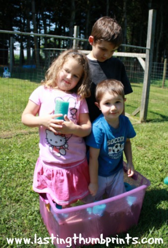 And, of course, the inevitable happened. Rub-a-dub-dub, three kids in a tub!