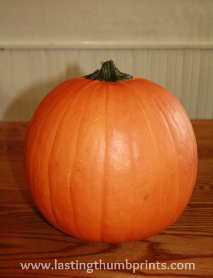 Preheat your oven to 350 degrees. Clean your pumpkin so that it is free from dirt. The pumpkin I had available was pretty large. The smaller pie pumpkin is sweeter and tends to be less fibrous, but I have used both successfully to make homemade pumpkin puree.